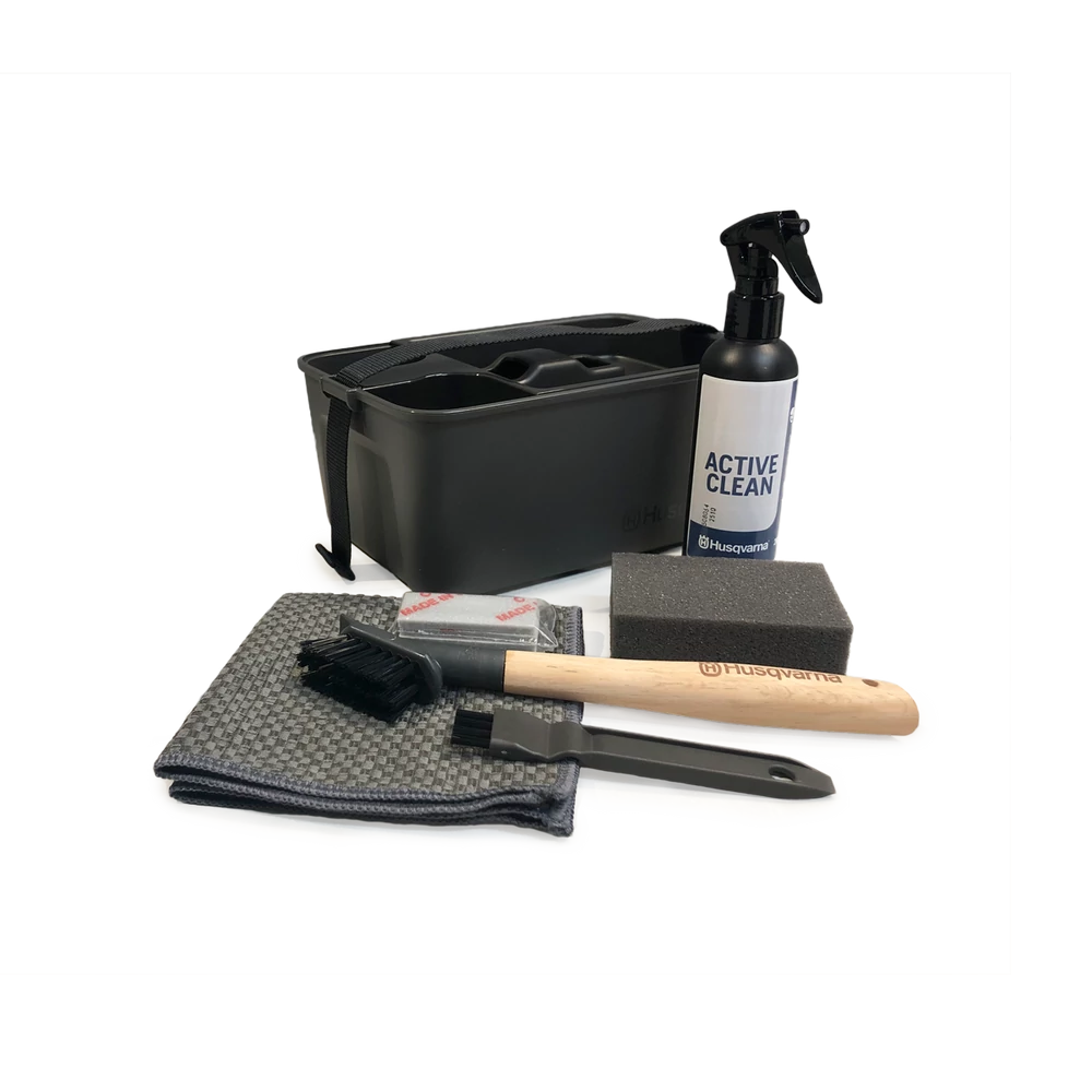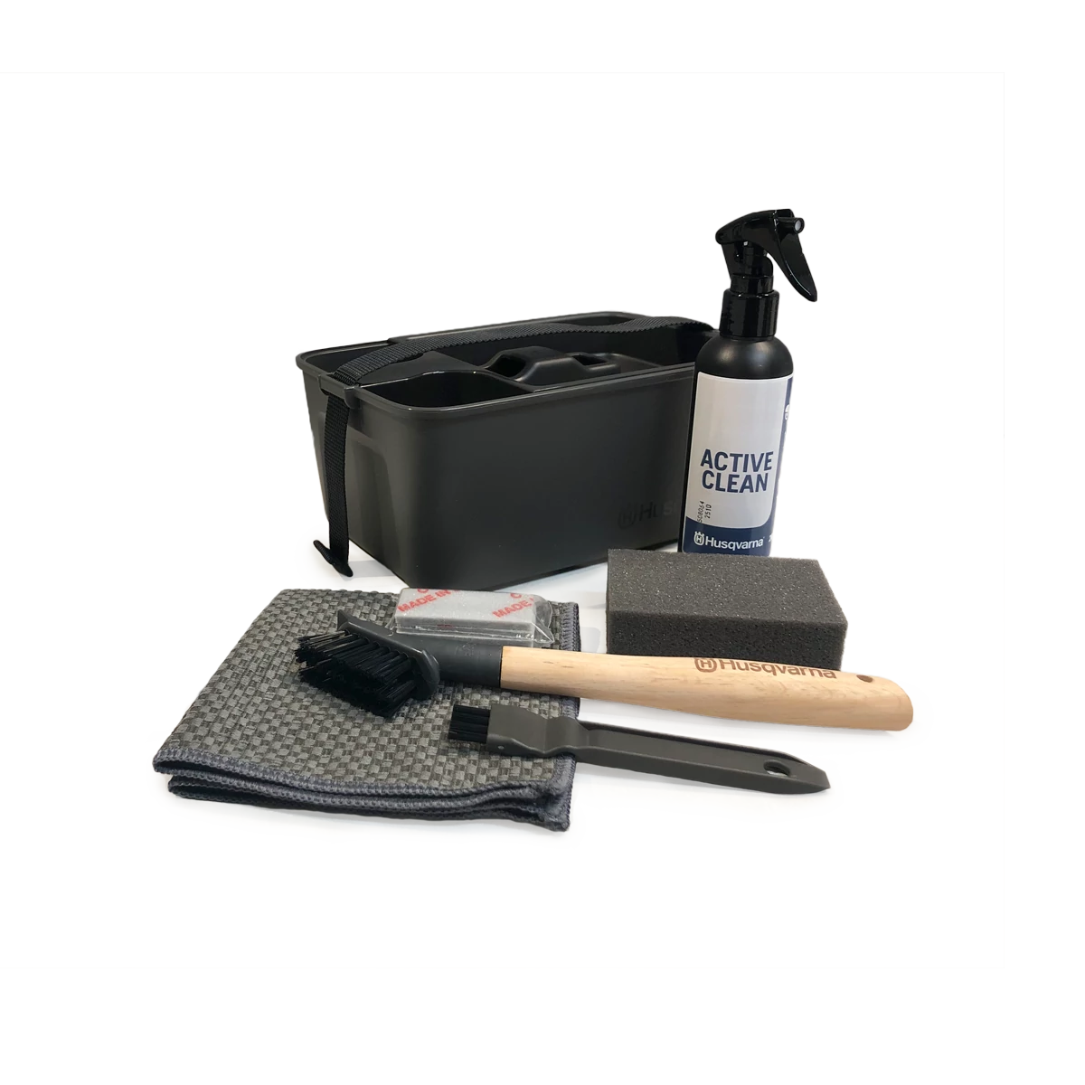 A készlet az Automower szezon alatti könnyebb tisztítására és karbantartására szolgál. A készlet a következőket tartalmazza: 2 db speciális kefe, csavarhúzó a vágókések cseréjéhez, csiszoló párna a fűnyíró és a töltőállomás csatlakozóinak tisztításához, törlőkendő és egy műanyag ápoló spray, hogy a műanyag alkatrészek fényesek maradjanak.