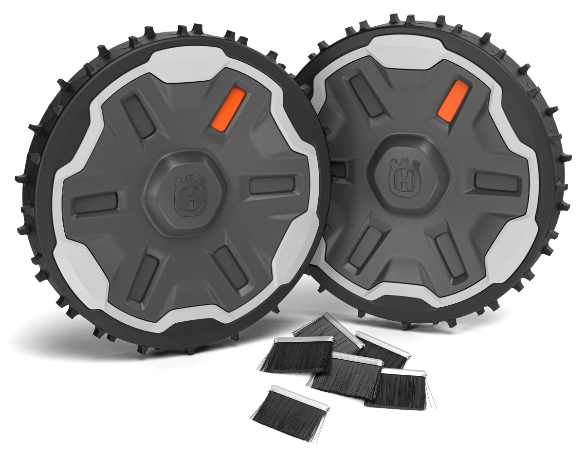 A terepkerék készlet (rough terrain kit) kifejezetten lejtős, egyenetlen vagy csúszós felületekre lett tervezve. Ha a kerted felülete változatos; meredek lejtős vagy fűcsomós, ez a készlet segít, hogy a robot jobban teljesítsen, még a csúszós terepen is.